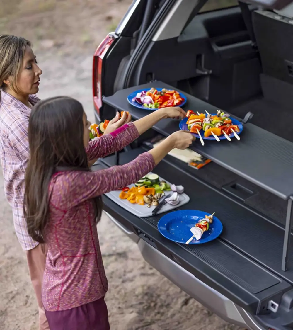 Be up for... everything. The available Cargo Tailgate Manager triples as a tailgate backrest, shelf, or table with a 35-lb. capacity.