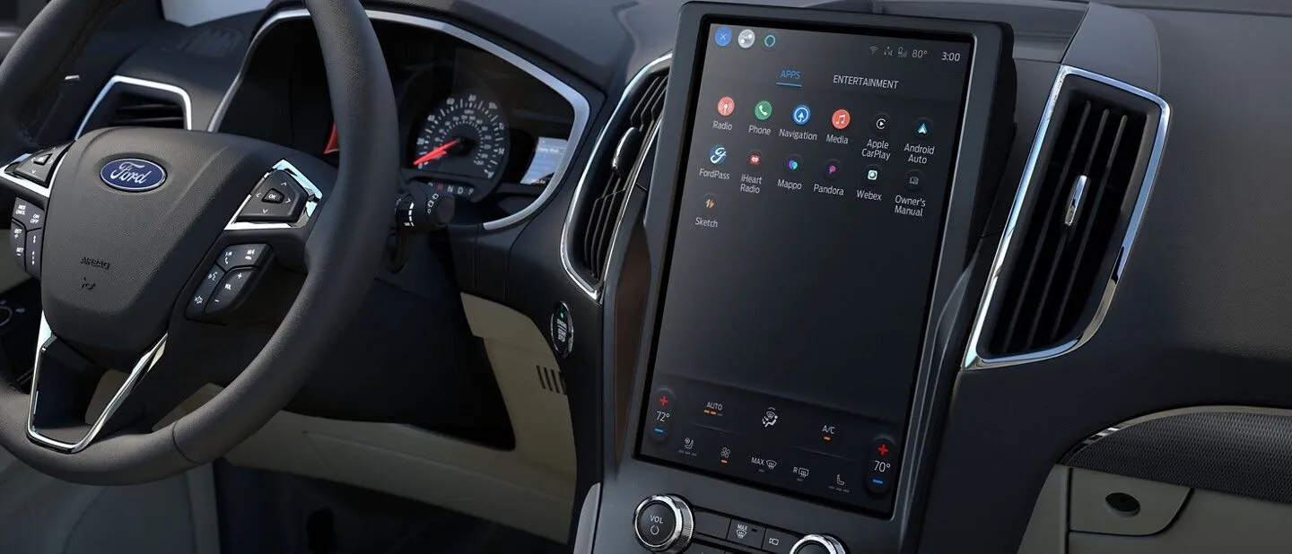 Voice-recognition, cloud-based connectivity offers a more personalized driving experience. Easily navigate the enormous 12-inch LCD touchscreen. Receive Ford Power-Up software updates that are designed to help make your Ford Edge SUV better over time, enjoy smartphone applications and a host of other handy tech.