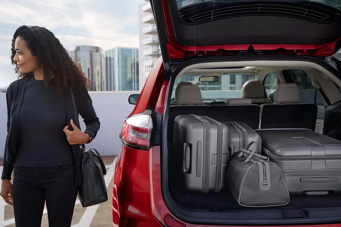 - Hands-Free, Foot-Activated Liftgate: Simply kick your foot under the bumper and the liftgate opens. You can also adjust the liftgate height for low overhangs.